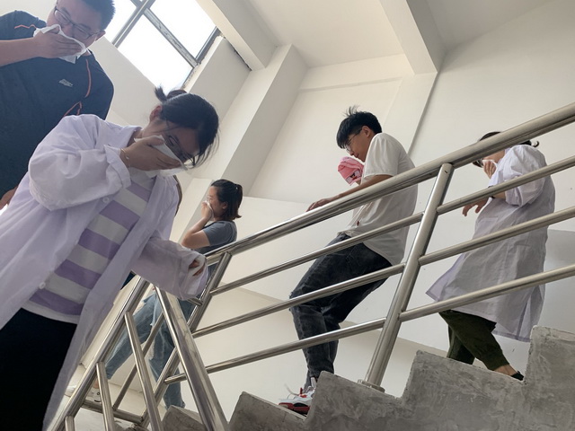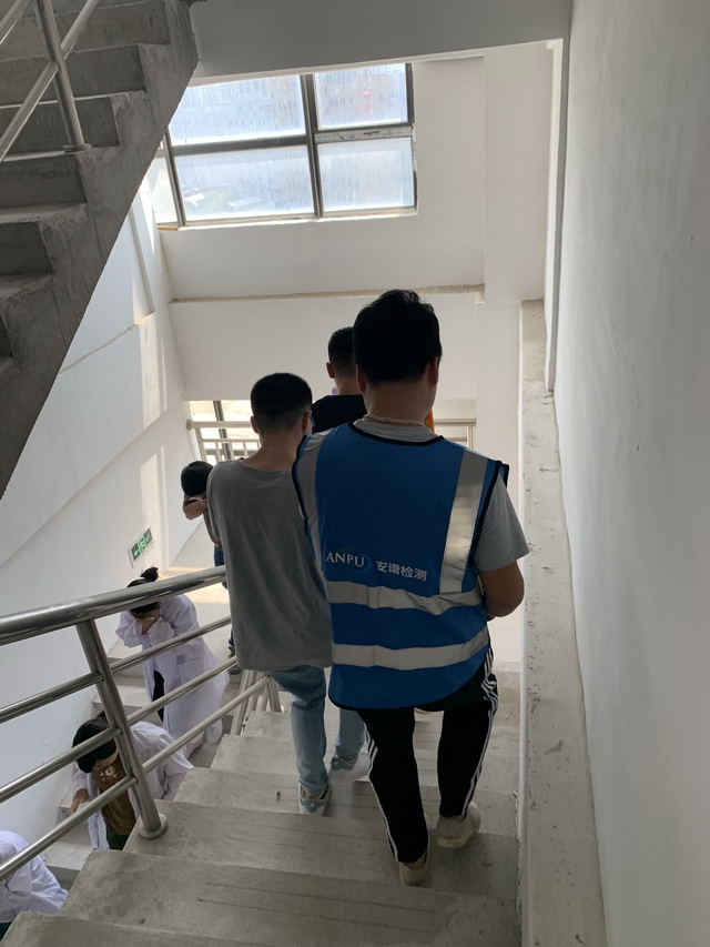 弯着腰从安全通道逃生